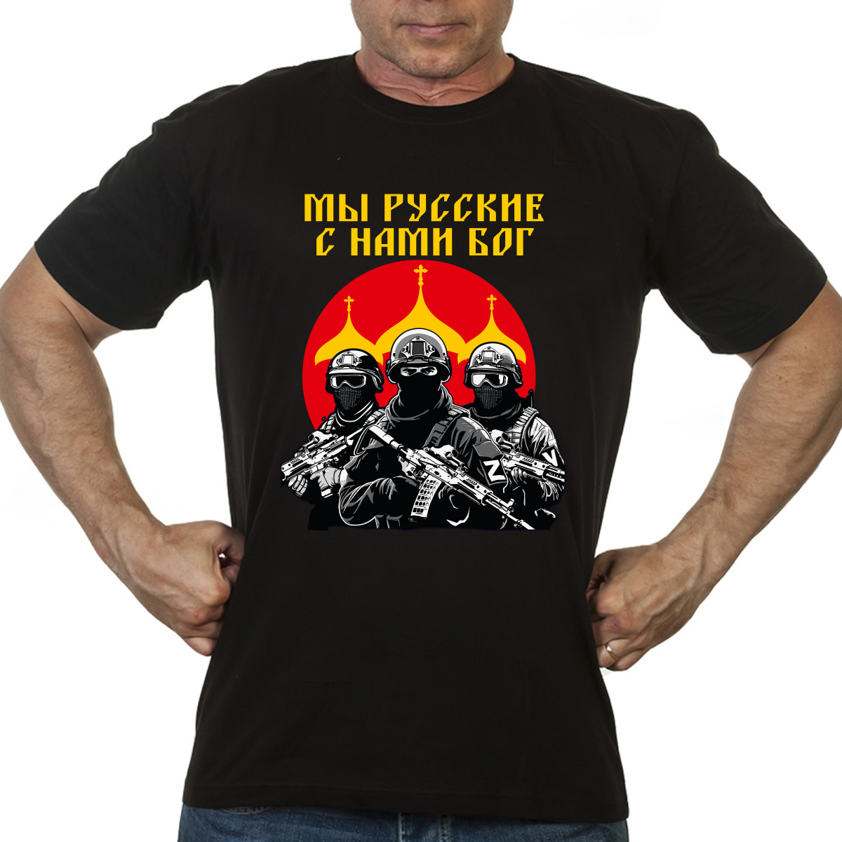 Новинка. Черная футболка "Мы русские, с нами Бог"