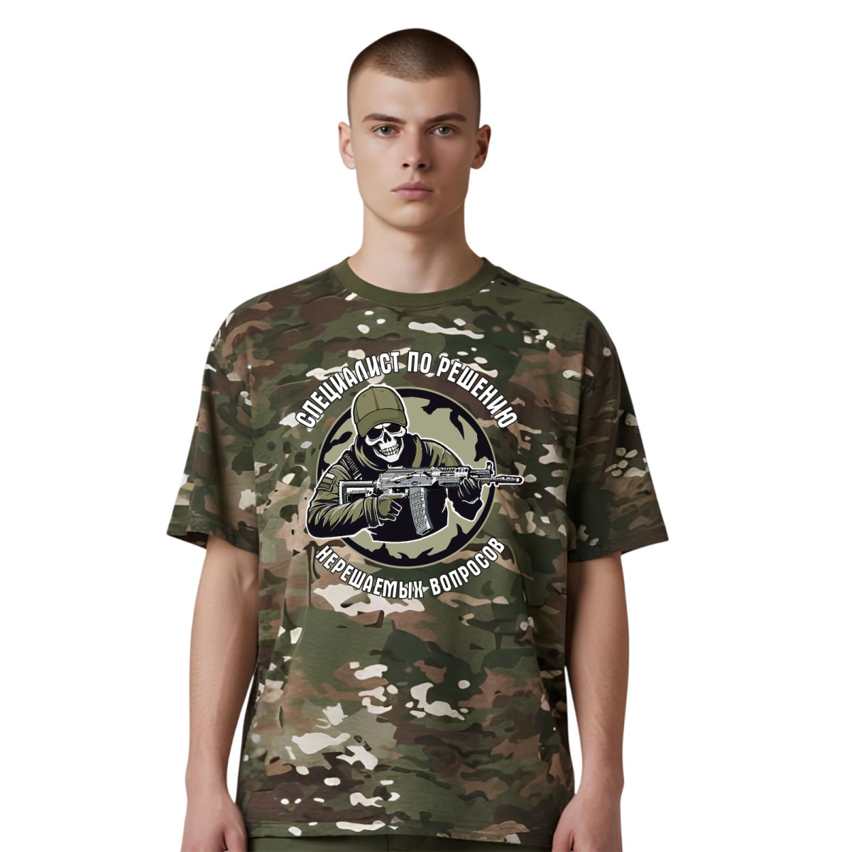Новинка. Камуфляжная футболка "Специалист по решению нерешаемых вопросов" (Мультикам)