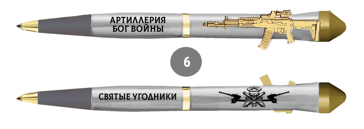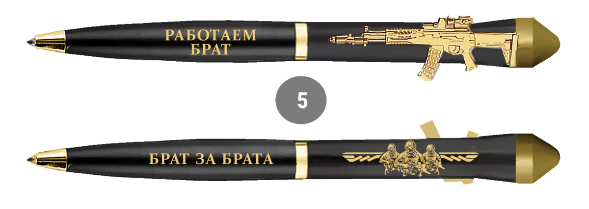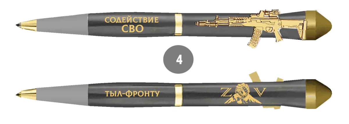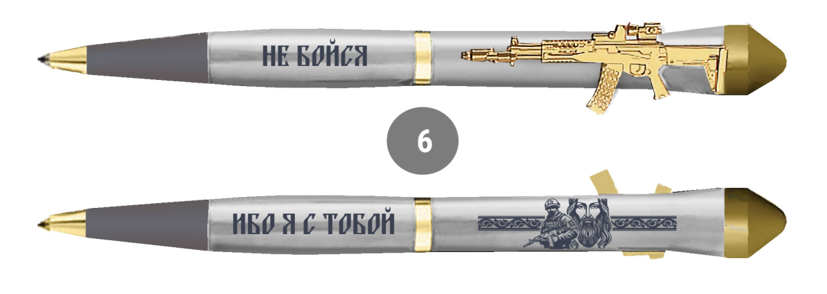 (Наконечник корпуса выполнен в форме боеголовки ракеты «Орешник», подчёркивая патриотичный характер ручки.)