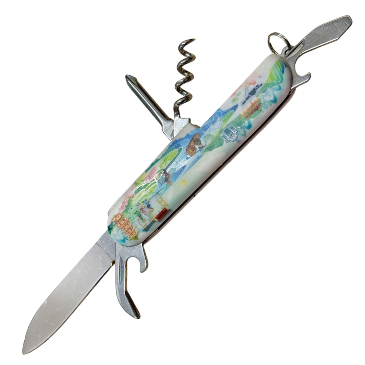 Туристический нож мультитул 5-в-1 (нож 60мм, штопор, отвертка, открывалка, консервный нож)