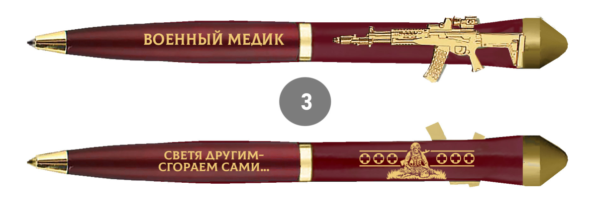 Подарочная ручка военный Медик "Светя другим – сгораем сами…" с автоматом в футляре
