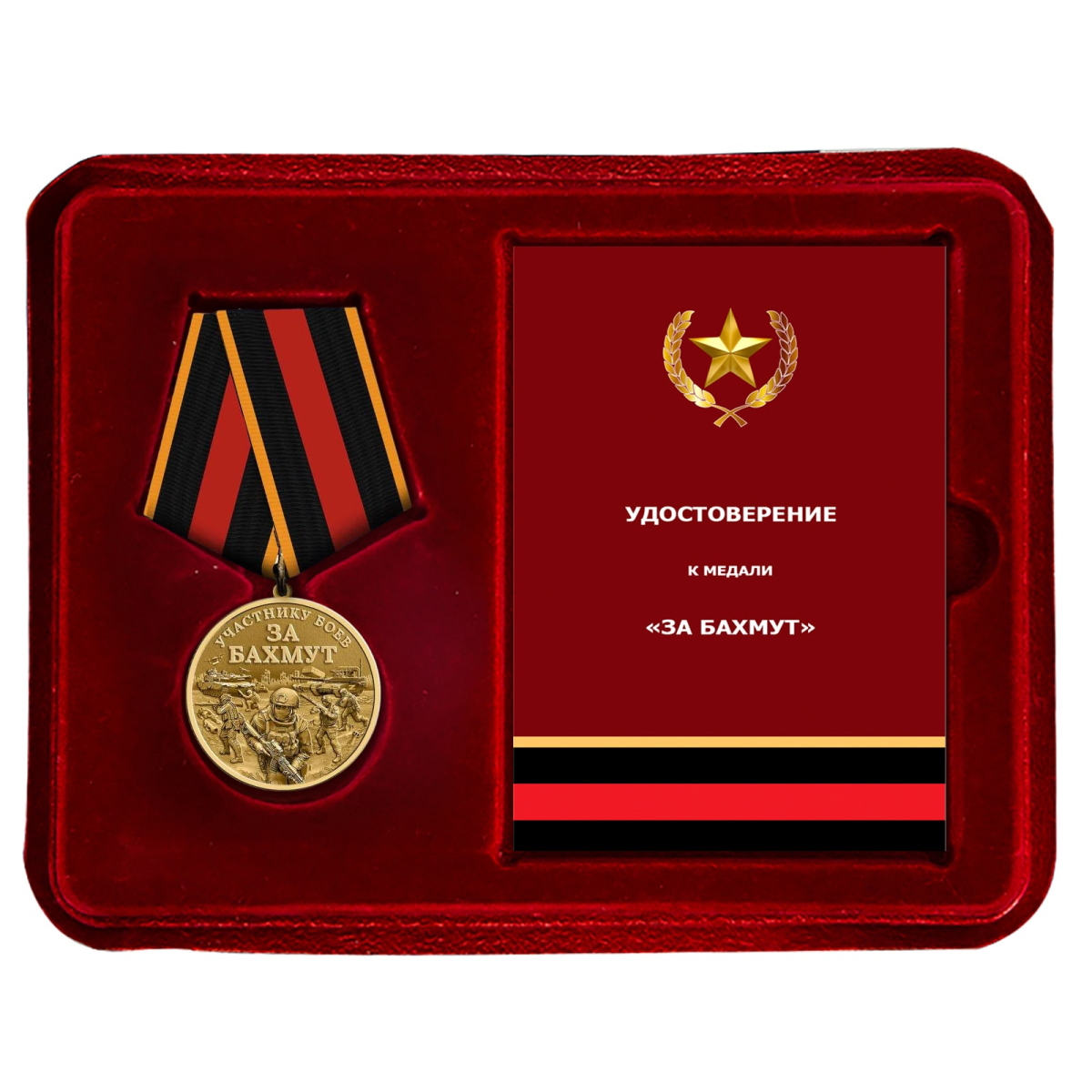 Памятная медаль участнику боёв "За Бахмут" в наградном бархатистом футляре
