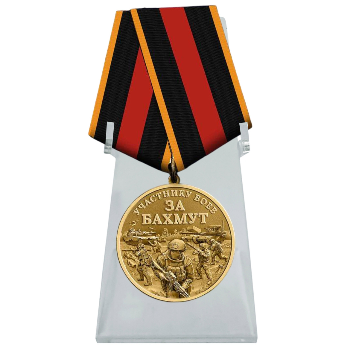 Памятная медаль участнику боёв "За Бахмут" на подставке