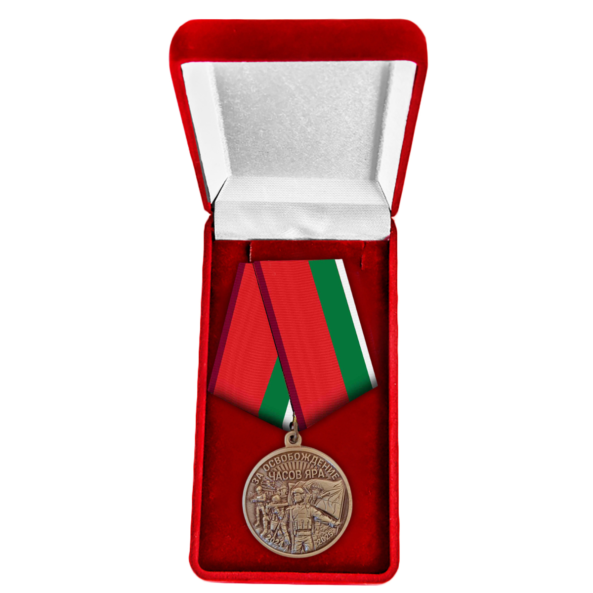 Памятная медаль "За освобождение Часов Яра" в наградном бархатистом футляре