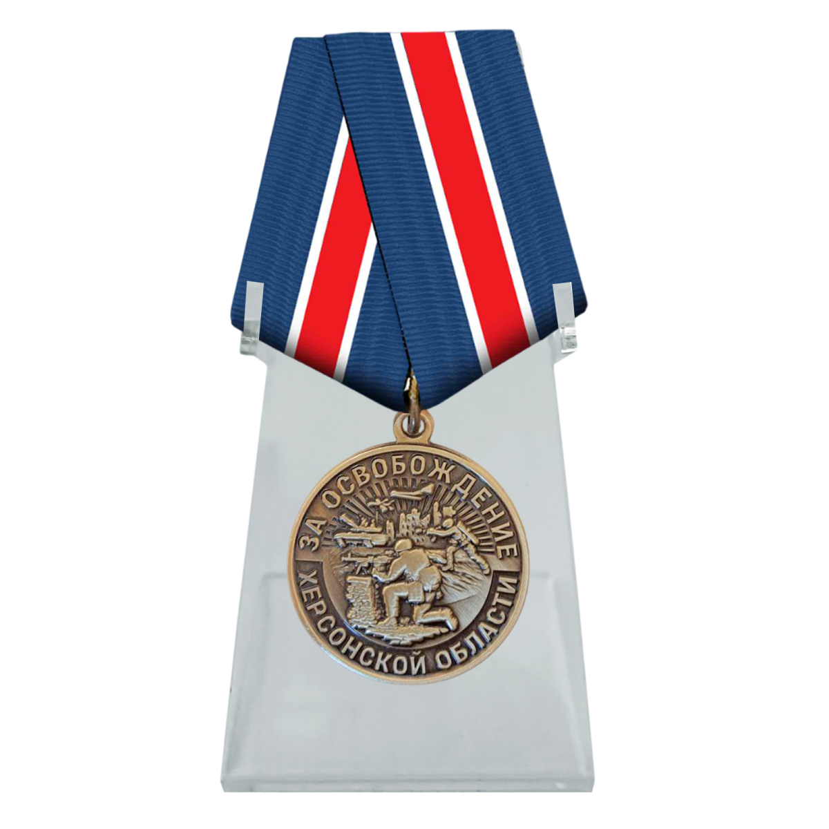 Памятная медаль "За освобождение Херсонской области" на подставке