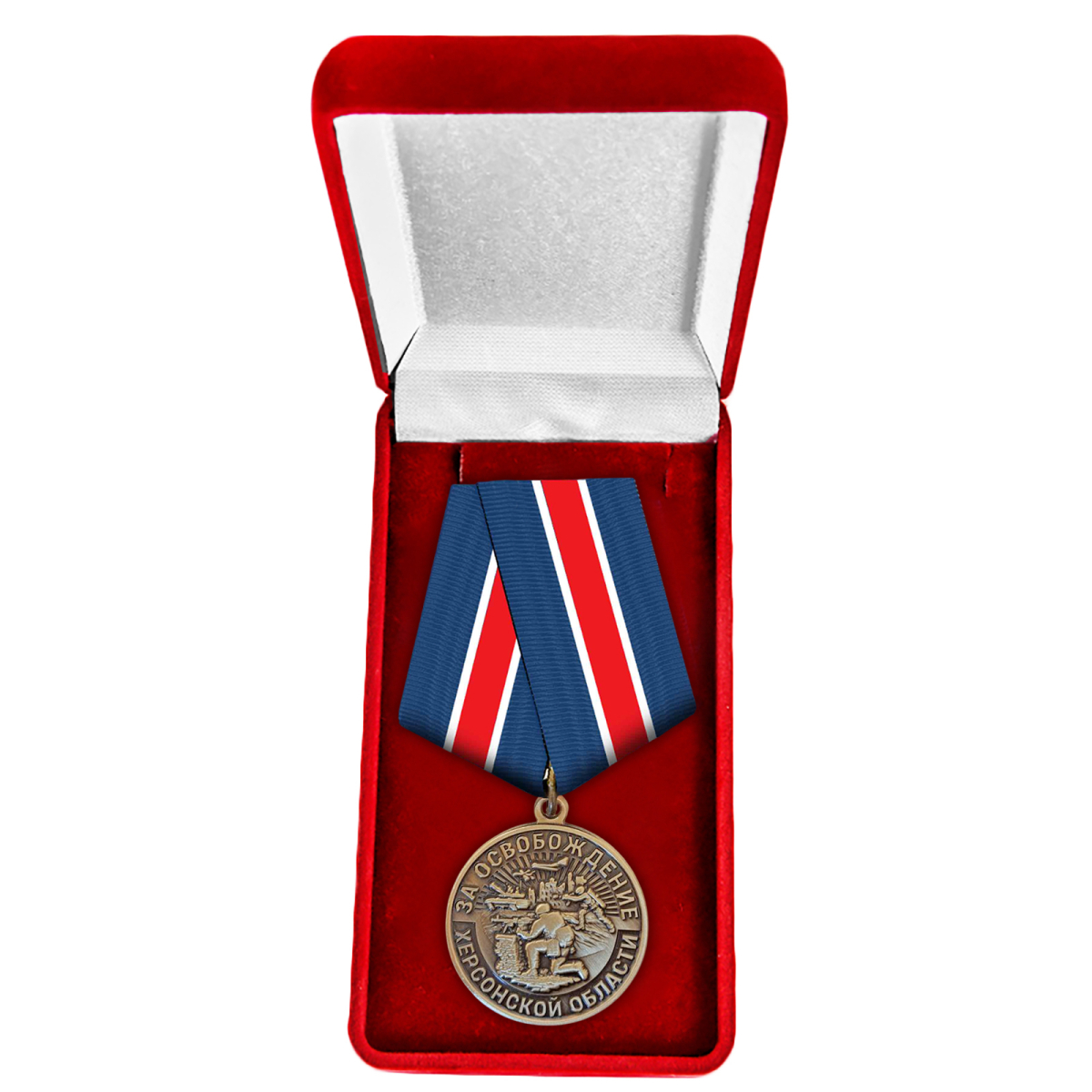 Памятная медаль "За освобождение Херсонской области" в наградном бархатистом футляре