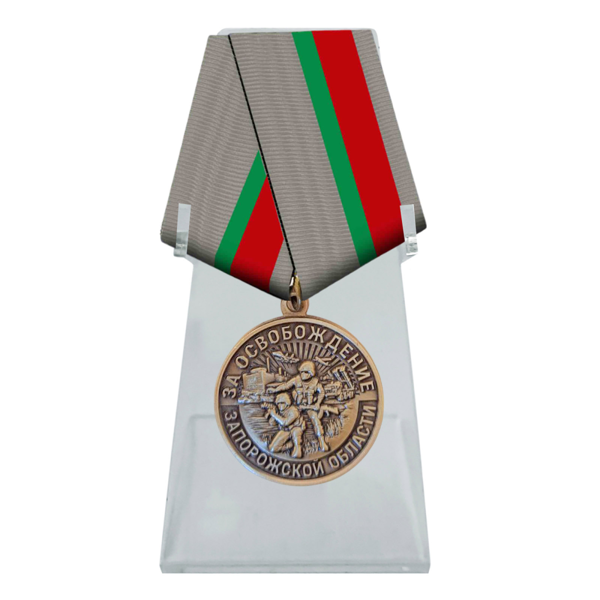Памятная медаль "За освобождение Запорожской области" на подставке