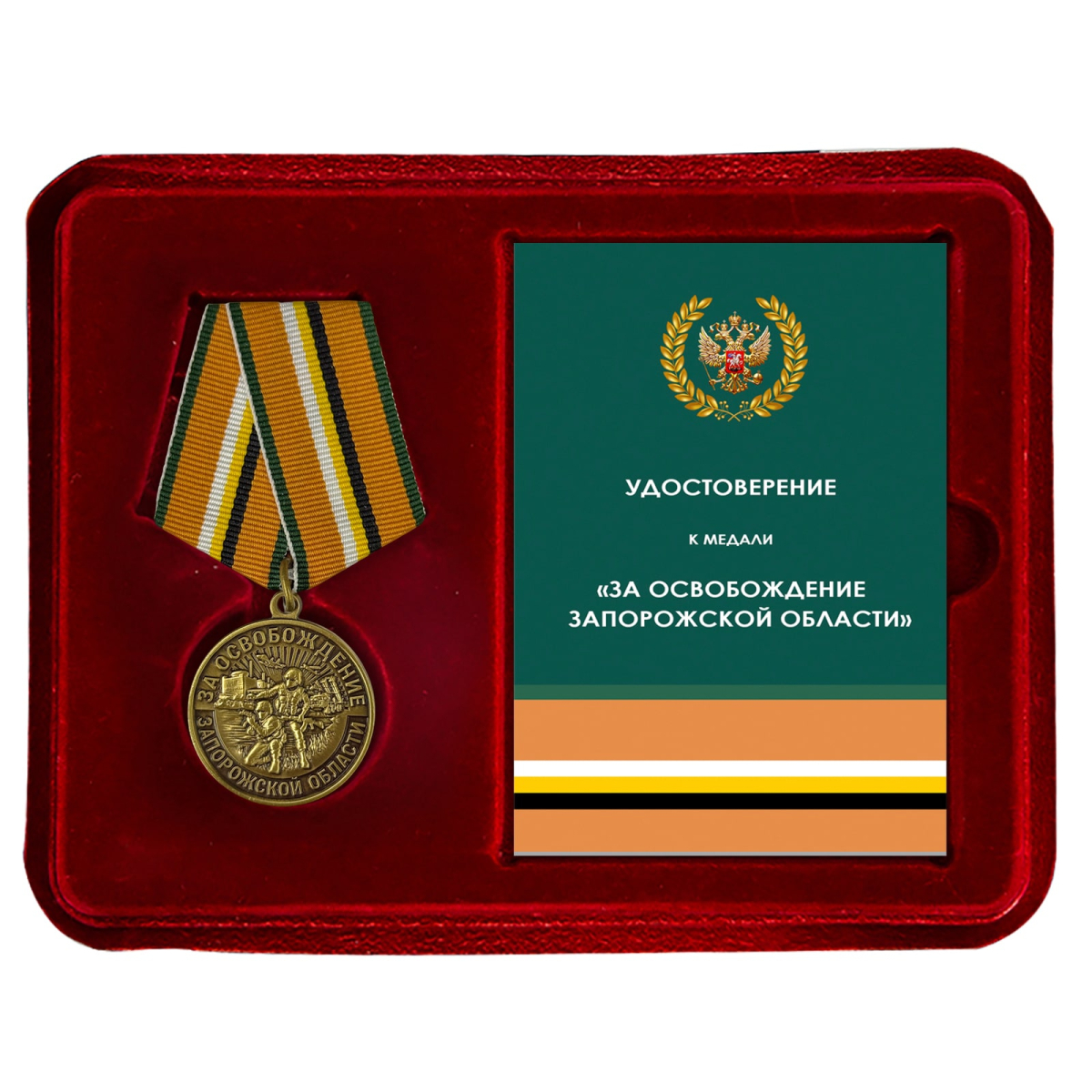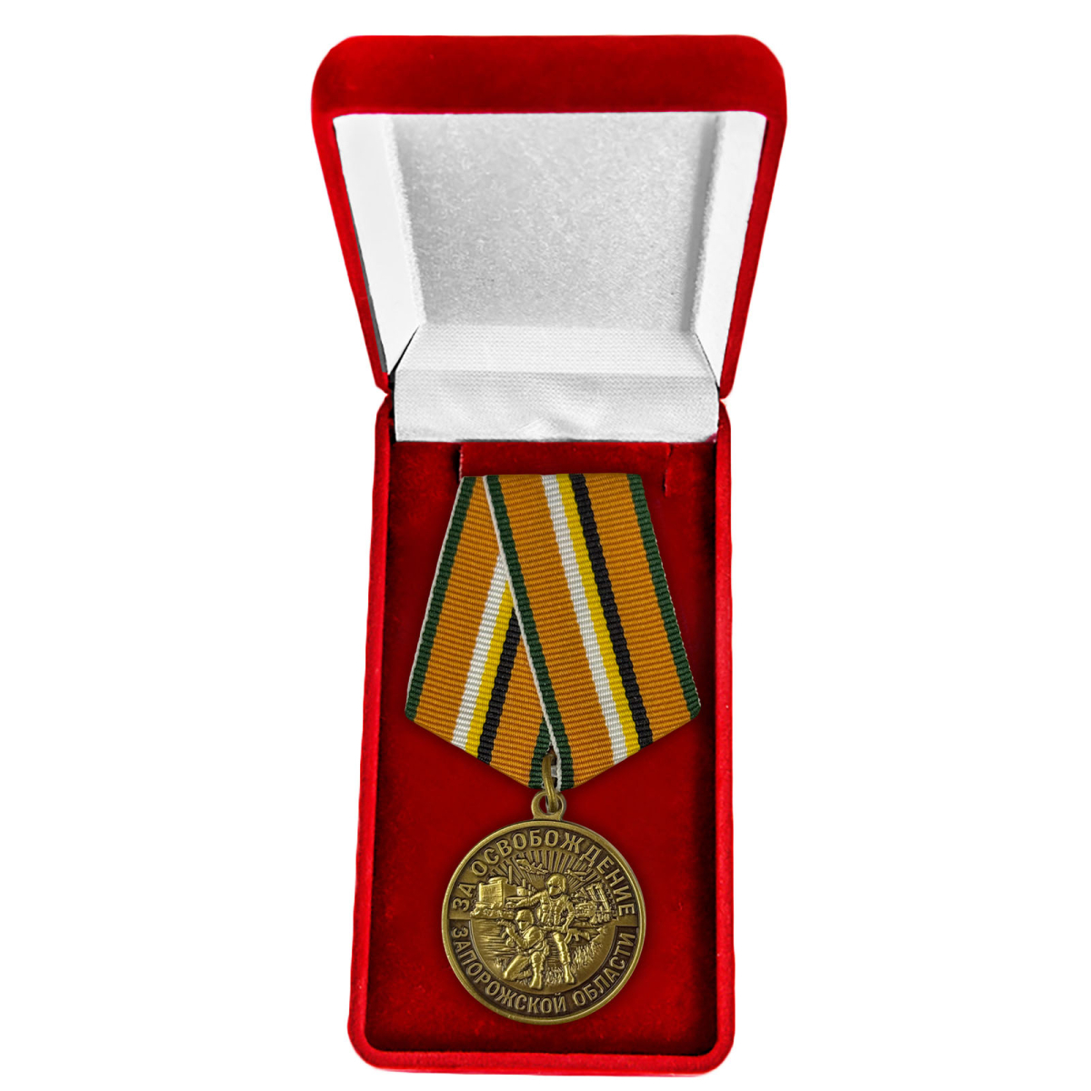 Памятная медаль "За освобождение Запорожской области" в наградном бархатистом футляре