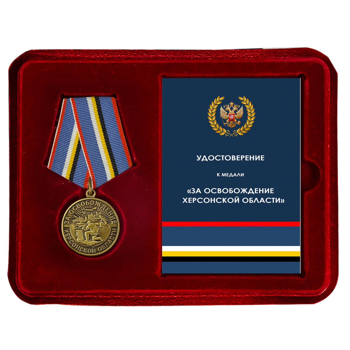 Памятная медаль "За освобождение Херсонской области" в наградном бархатистом футляре