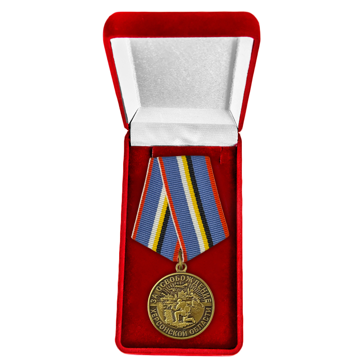 Памятная медаль "За освобождение Херсонской области" в наградном  бархатистом футляре