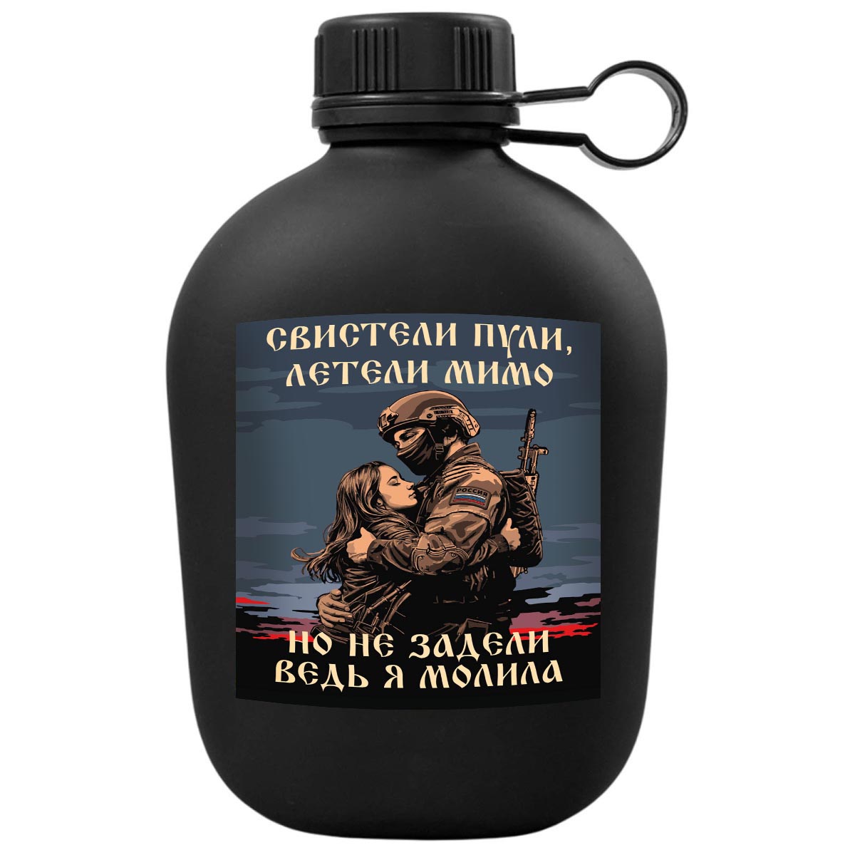 Походная фляга "Свистели пули, летели мимо – но не задели ведь я молила"