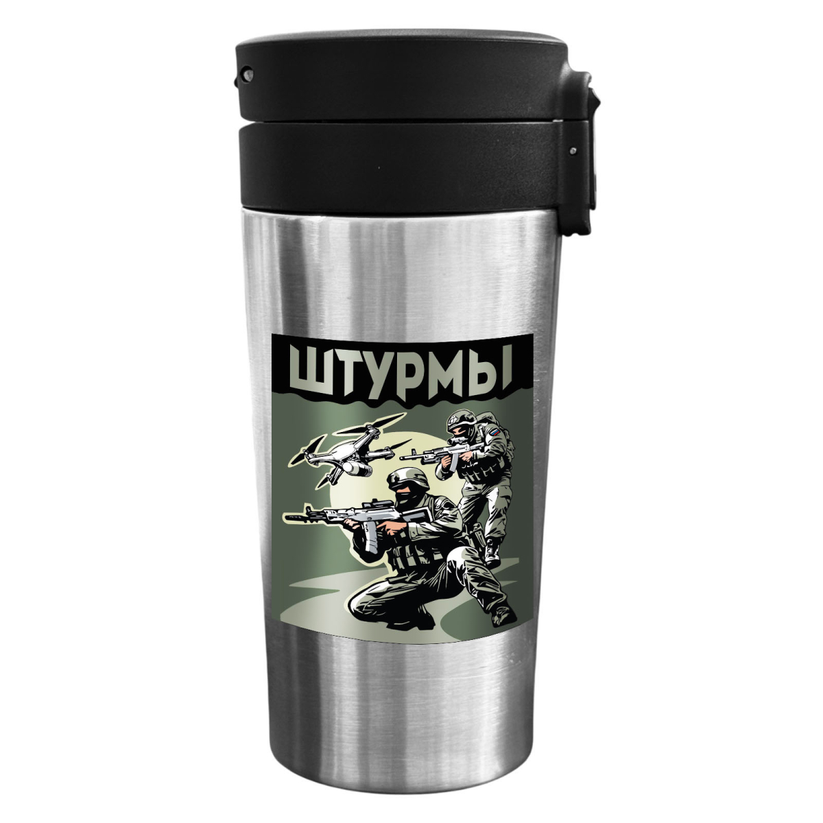 Так же вы можете подарить на 23 февраля термокружку – этот мини-вариант термоса уже давно завоевал симпатию потребителей. В наличии темокружки из нержавейки, в том числе с питанием от прикуривателя авто. Вы можете купить ко Дню Защитника Отечества термокружку с символикой СВО, с символикой различных родов войск, силовых и ведомственных структур.