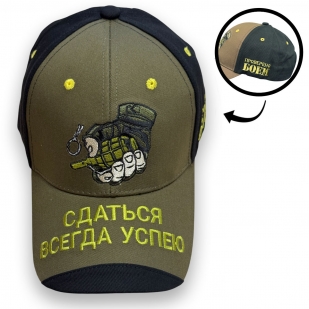 Купить бейсболку "Сдаться всегда успею" можно в Военпро, с удобной доставкой по всей РФ.