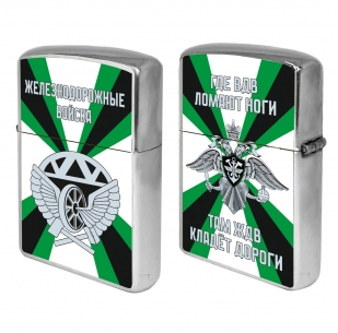Купить бензиновую зажигалку "Железнодорожные войска" можно в Военпро, с удобной доставкой по всей РФ.