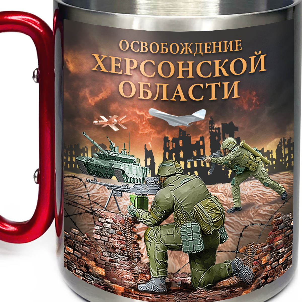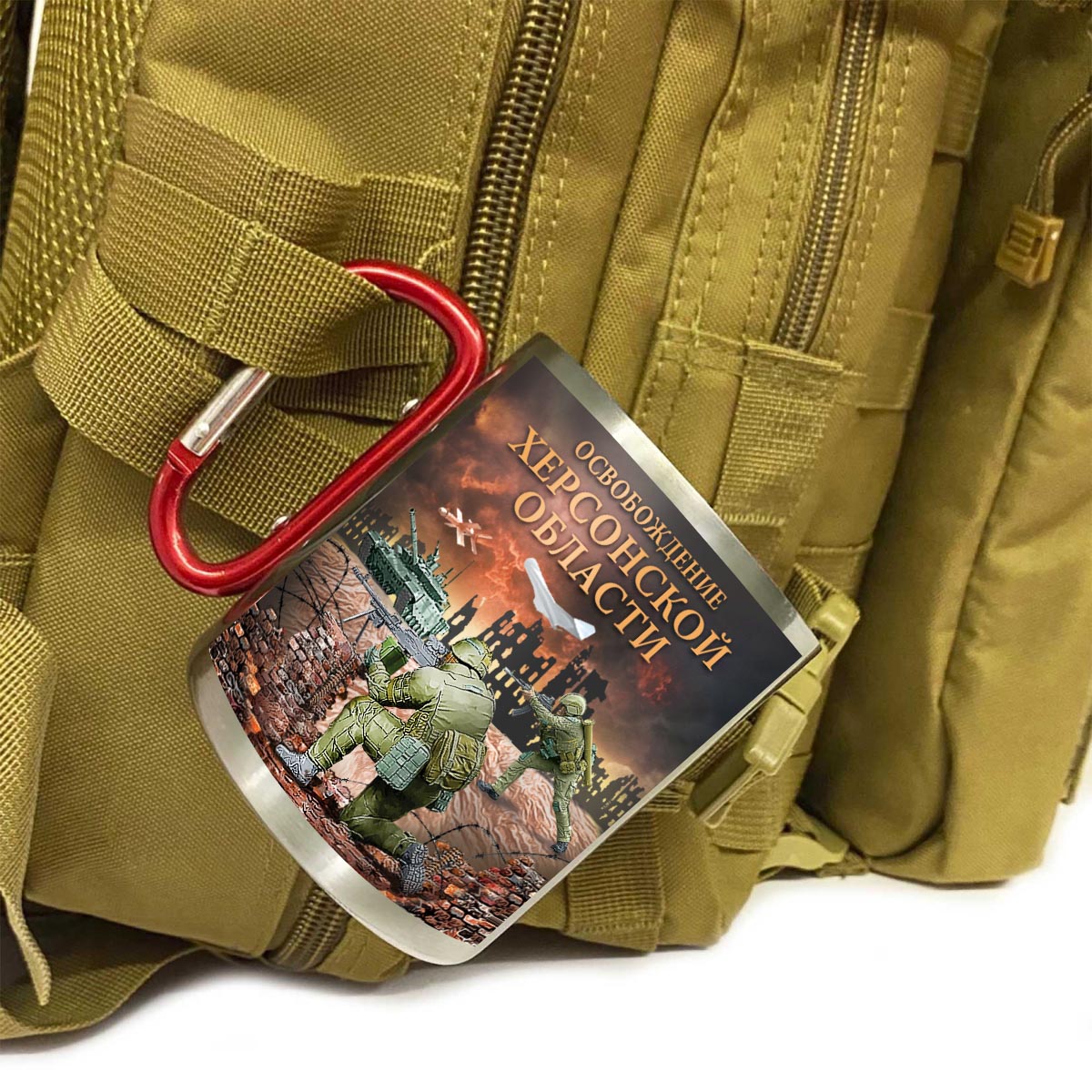 Купить кружку "Освобождение Херсонской области" с ручкой карабином можно в Военпро, с удобной доставкой по всей РФ.