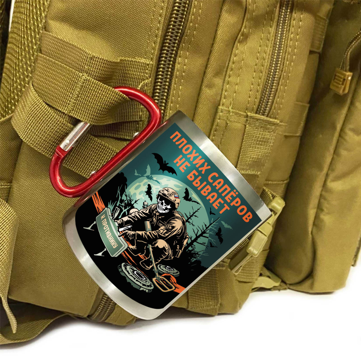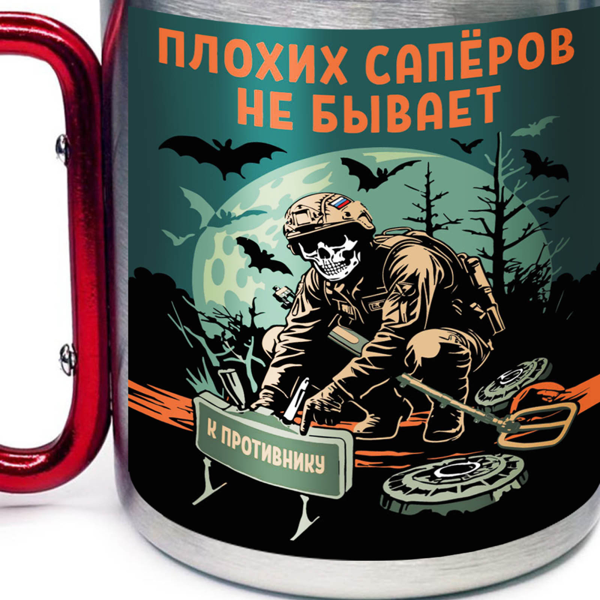 Купить кружку "Плохих саперов не бывает" с ручкой карабином можно в Военпро, с удобной доставкой по всей РФ.