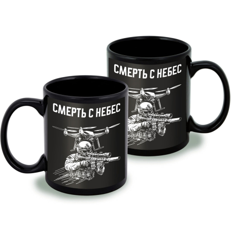 Черная керамическая кружка "Смерть с небес" Дронармия