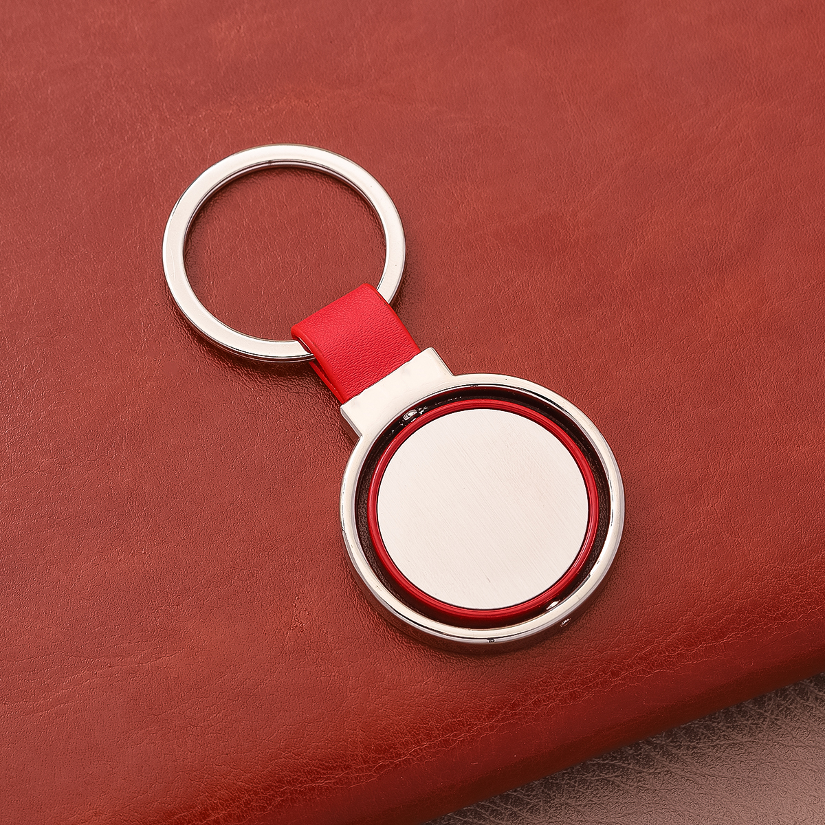 Двухсторонний брелок с подвижным механизмом — стильный аксессуар для ключей, рюкзака или сумки. Выполнен из прочного металла с глянцевой вставкой и элементом из кожи.