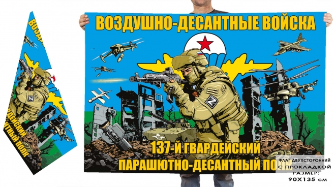 Купить двухсторонний флаг "137 гв. парашютно-десантный полк" можно в интернет-магазине Военпро с удобной доставкой по всей РФ.