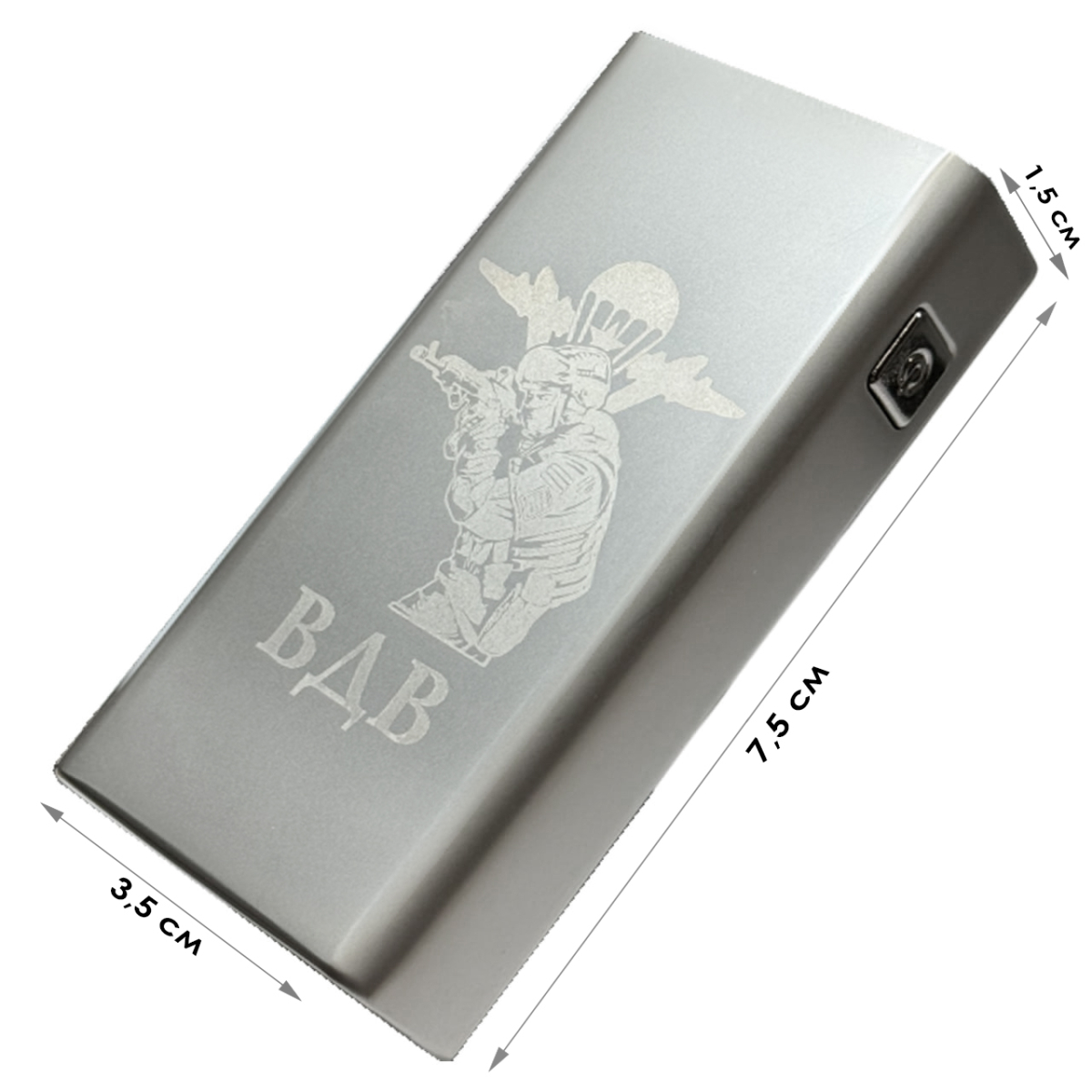 Купить электронную USB-зажигалку ВДВ можно в Военпро, с удобной доставкой по всей РФ.