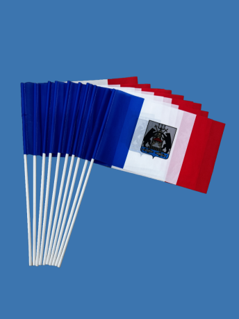 Флажки выполнены из полиэфирного шелка, с тематическим изображением в центре.
