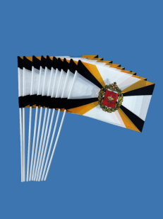 Флаги доступны в восьми вариантах размеров - от больших знамен 140х210 см, до маленьких флажков 15х23 см.