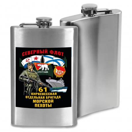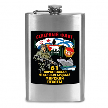 Купить фляжку "61 Киркенесская отдельная бригада Морской пехоты" можно в Военпро, с удобной доставкой по всей РФ.