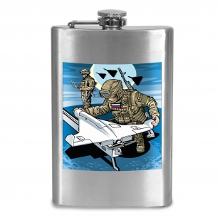 Фляжка "Дронармия" с виниловой наклейкой – нержавеющая сталь 304; 260 мл (9 oz); 9х15 см; винтовая крышка