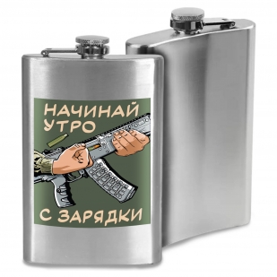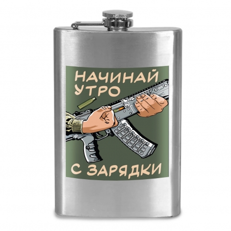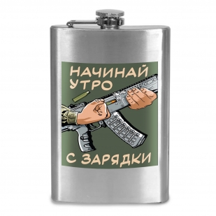 Купить фляжку "Начинай утро с зарядки" можно в Военпро, с удобной доставкой по всей РФ.