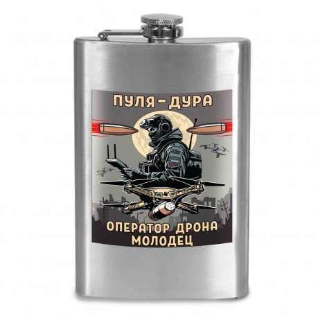 Купить фляжку "Пуля – дура, оператор дрона – молодец" можно в Военпро, с удобной доставкой по всей РФ.