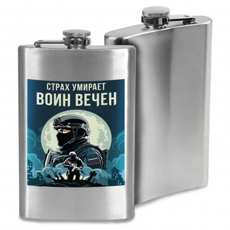 Купить фляжку "Страх умирает – Воин вечен" можно в Военпро, с удобной доставкой по всей РФ.