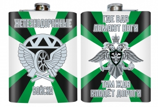 Купить фляжку "Железнодорожные войска" можно в Военпро, с удобной доставкой по всей РФ.