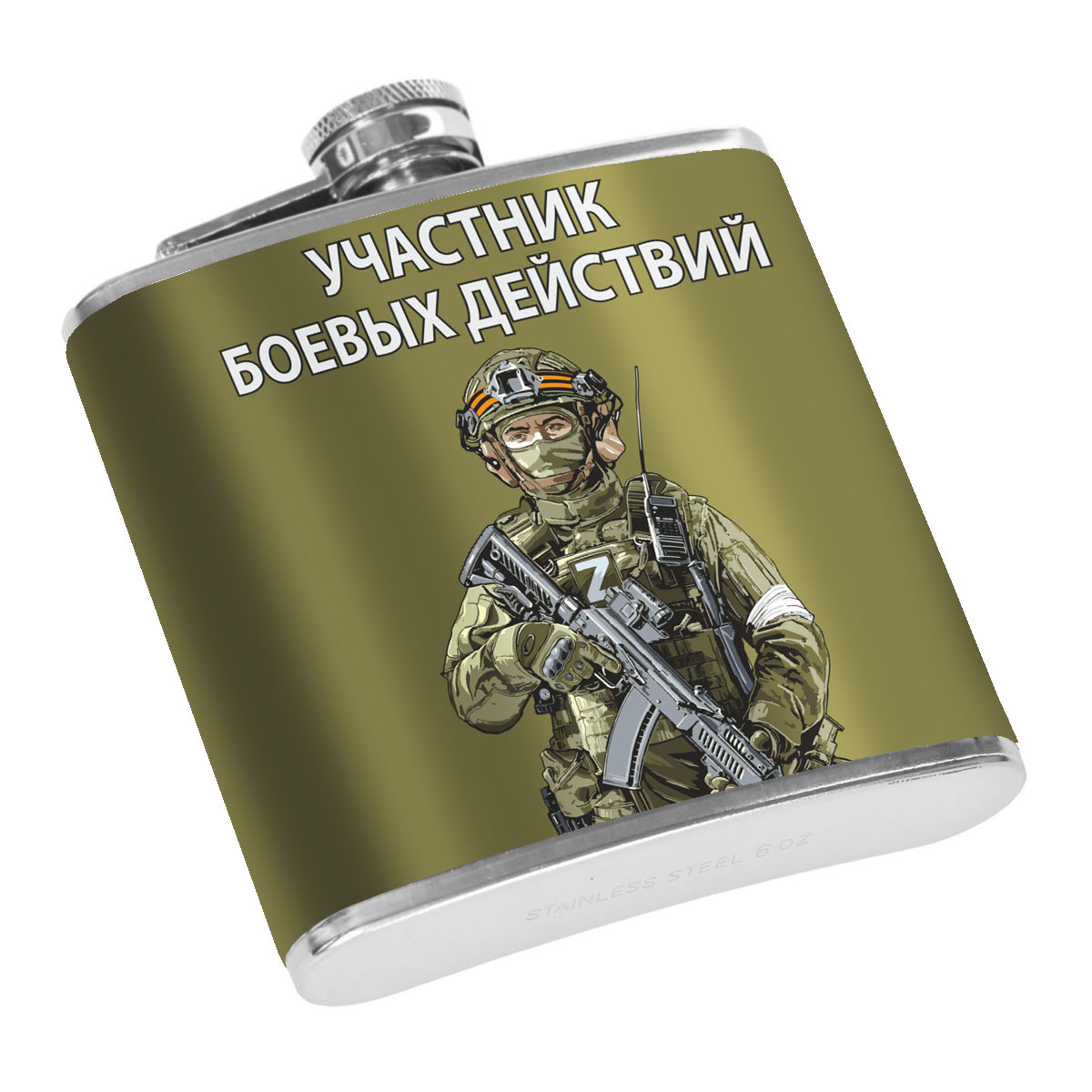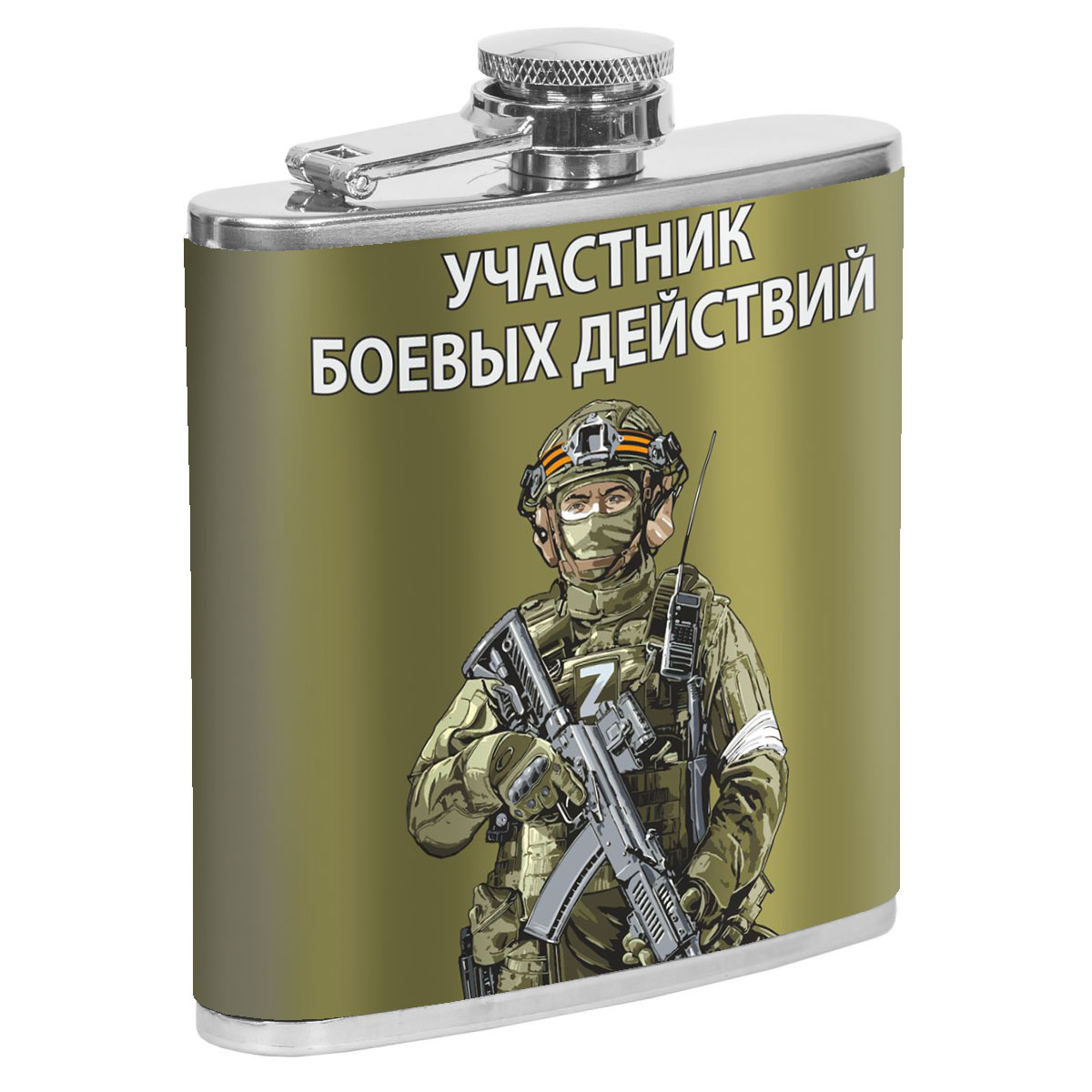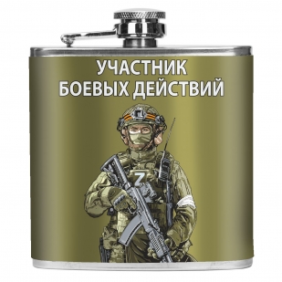 Купить фляжку "Участник боевых действий" можно в Военпро, с удобной доставкой по всей РФ.