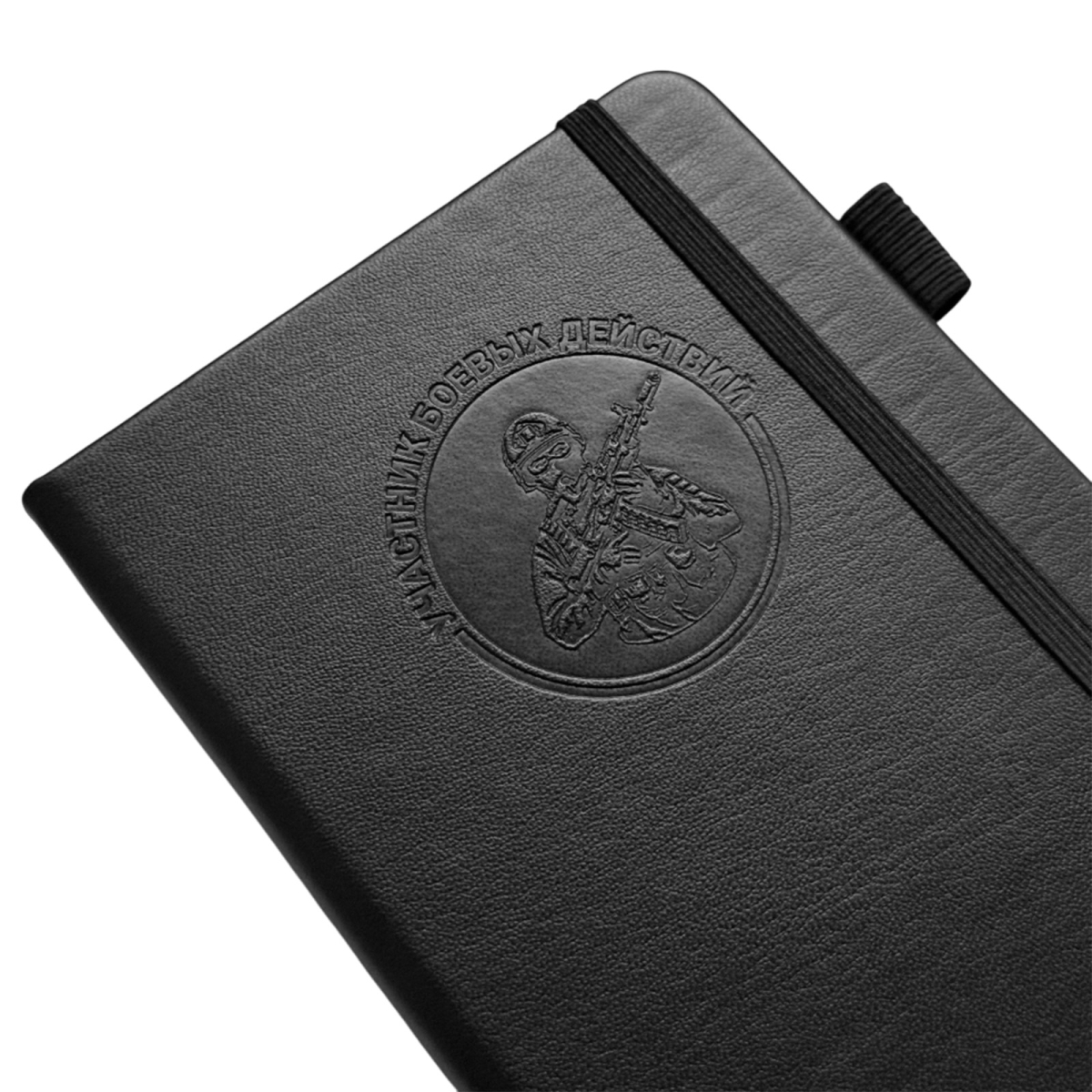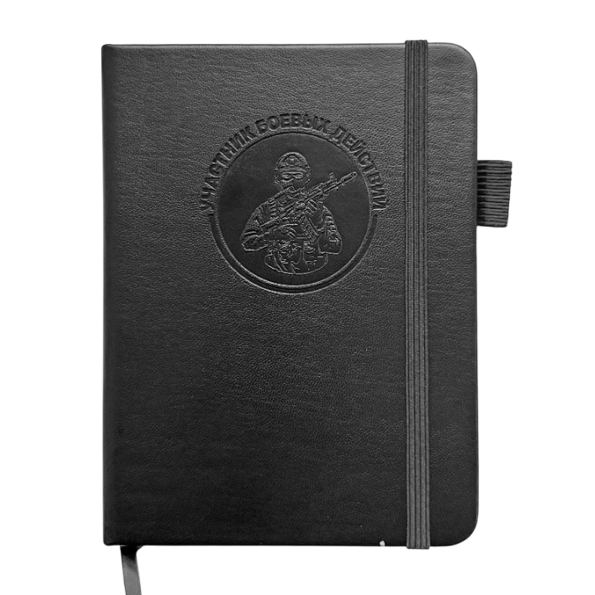 Компактный блокнот "Участник боевых действий" в размере 11х14.5 см практичный и презентабельный для повседневных задач, помещается в карман. Обложка выполнена из приятной на ощупь эко-кожи с тиснением, защищает внутренний блок, и придаёт изделию солидный, аккуратный вид.