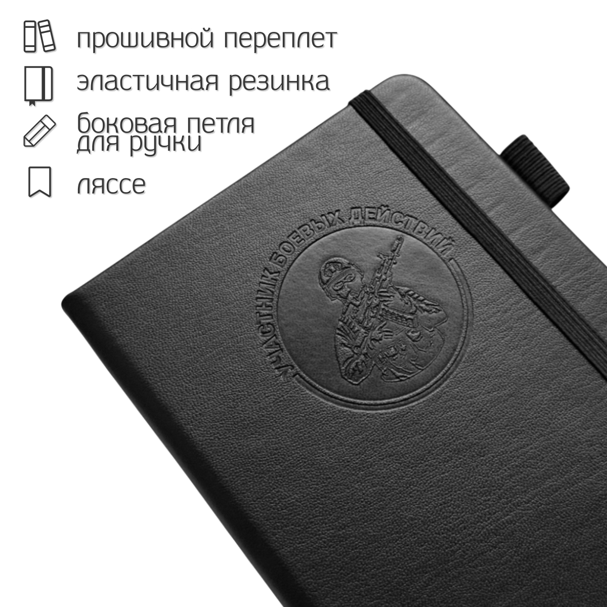 Карманный блокнот "Участник боевых действий" из эко-кожи (11х14.5 см) – формат A6; в линию; обложка из ЭКО-кожи; прошивной переплёт; ляссе; эластичная петля для ручки №143