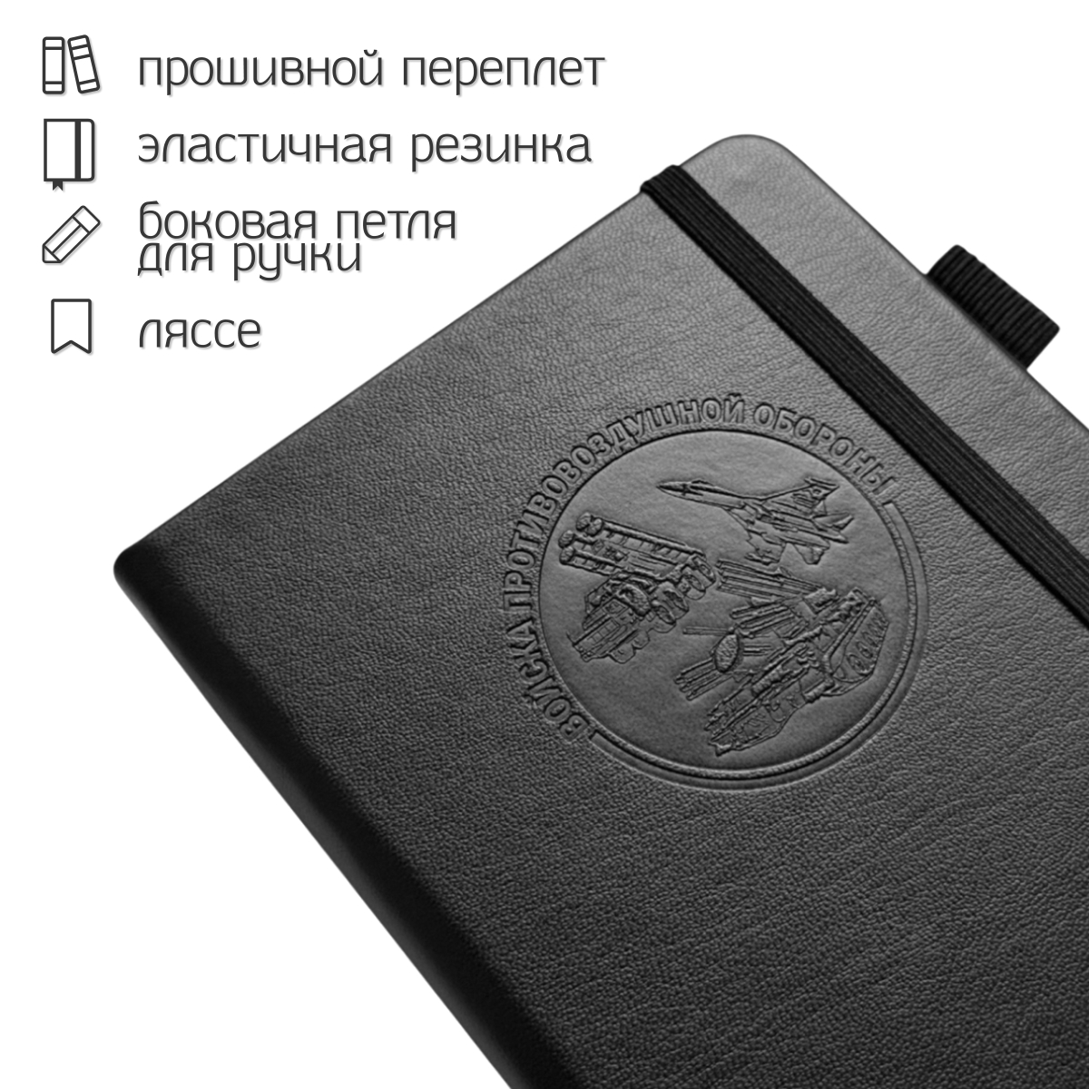 Компактный блокнот "Войска ПВО" в размере 11х14.5 см практичный и презентабельный для повседневных задач, помещается в карман. Обложка выполнена из приятной на ощупь эко-кожи с тиснением, защищает внутренний блок, и придаёт изделию солидный, аккуратный вид.