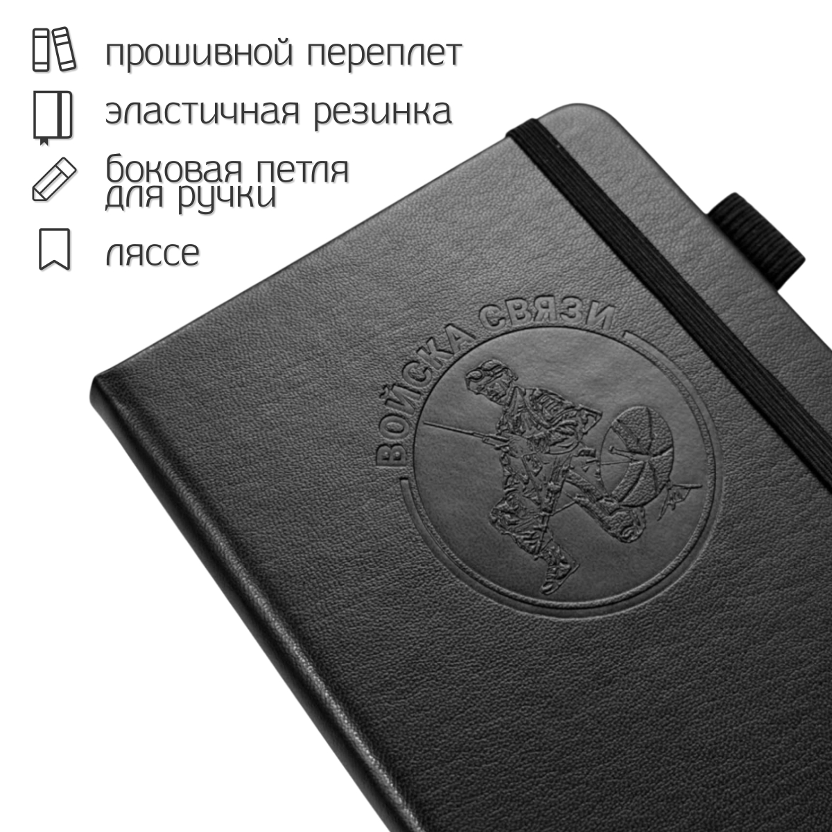 Карманный блокнот "Войска связи" из эко-кожи (11х14.5 см) – формат A6; в линию; обложка из ЭКО-кожи; прошивной переплёт; ляссе; эластичная петля для ручки №128