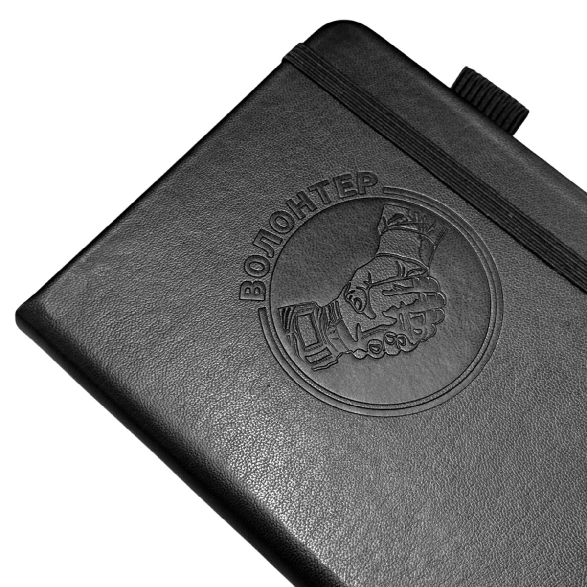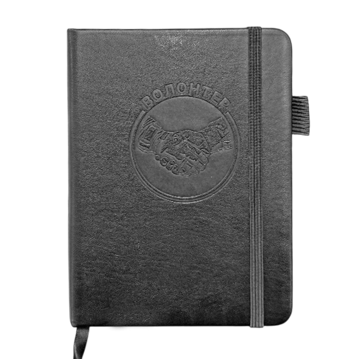 Компактный блокнот "Волонтер" в размере 11х14.5 см практичный и презентабельный для повседневных задач, помещается в карман. Обложка выполнена из приятной на ощупь эко-кожи с тиснением, защищает внутренний блок, и придаёт изделию солидный, аккуратный вид.