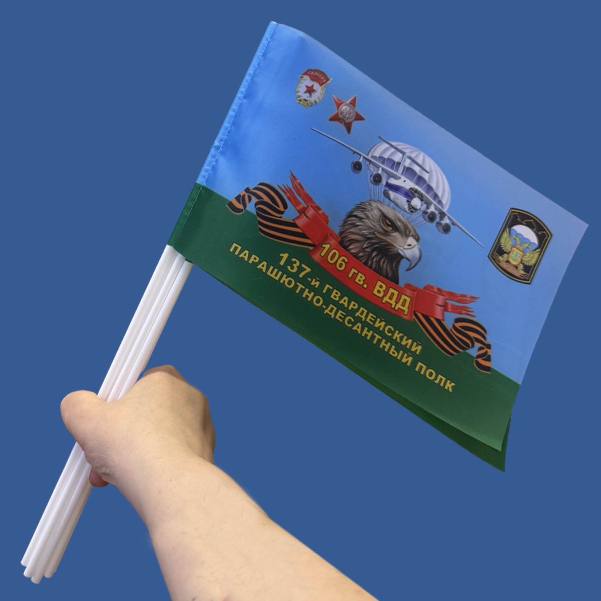 Купить флажки "137 гвардейский парашютно-десантный полк 106 гв. ВДД" можно в интернет-магазине Военпро с удобной доставкой по всей РФ.