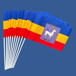 Флаги доступны в восьми вариантах размеров - от больших знамен 140х210 см, до маленьких флажков 15х23 см.