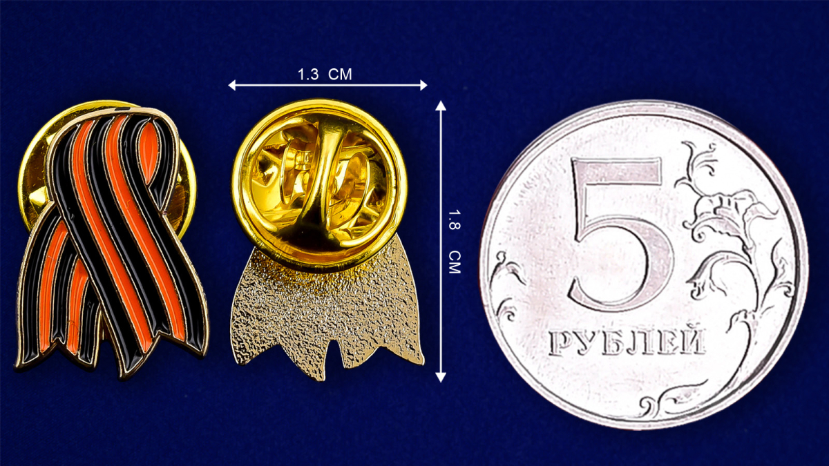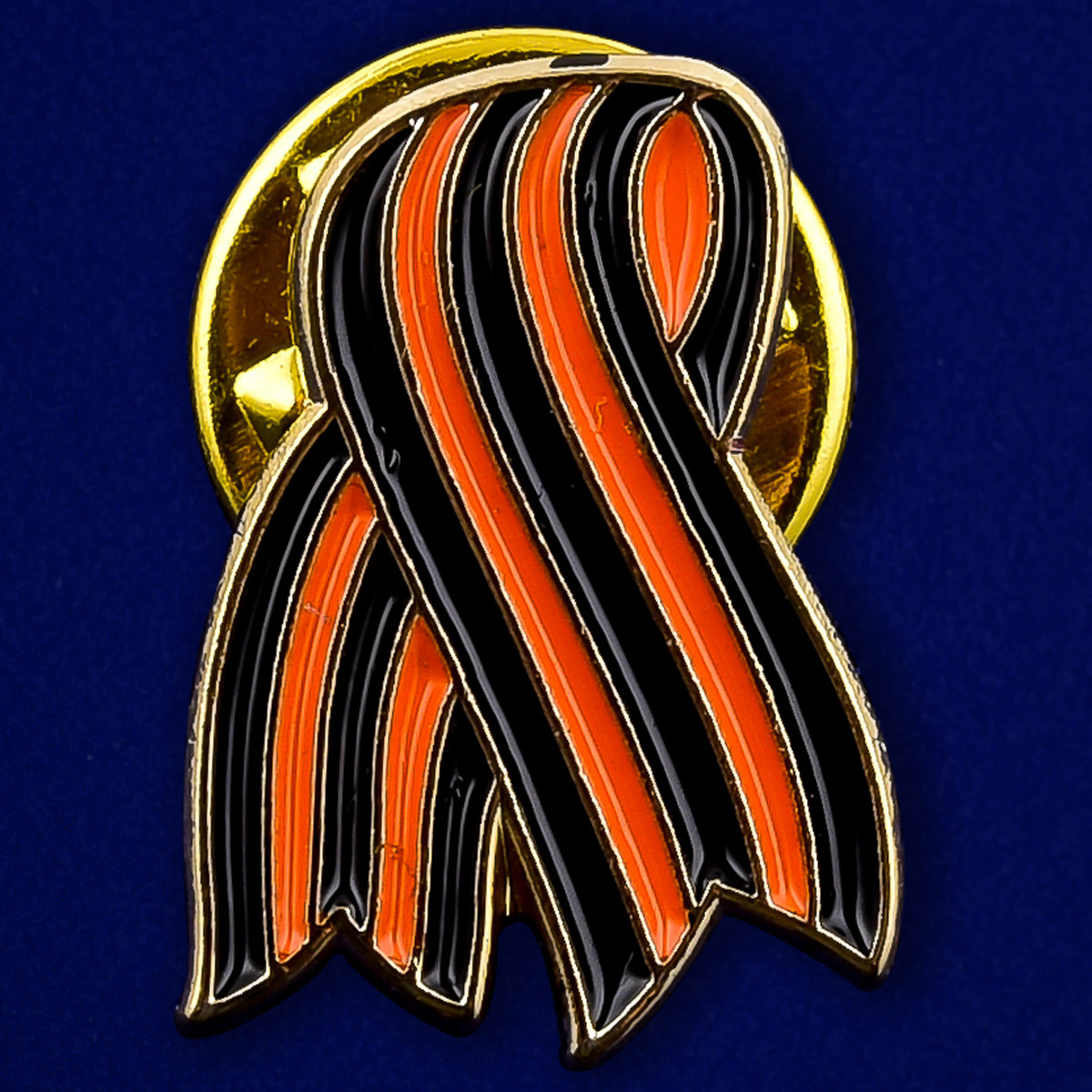 Значок с Георгиевской ленточкой из качественных материалов с гальваническим покрытием.