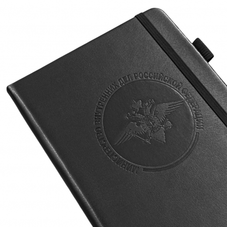 Черный блокнот МВД в размере 13.5х19.5 см практичный и презентабельный для повседневных задач. Обложка выполнена из приятной на ощупь эко-кожи с тиснением, защищает внутренний блок, и придаёт изделию солидный, аккуратный вид.