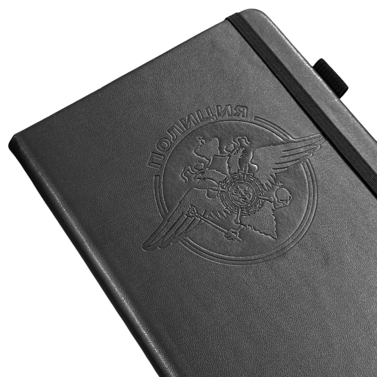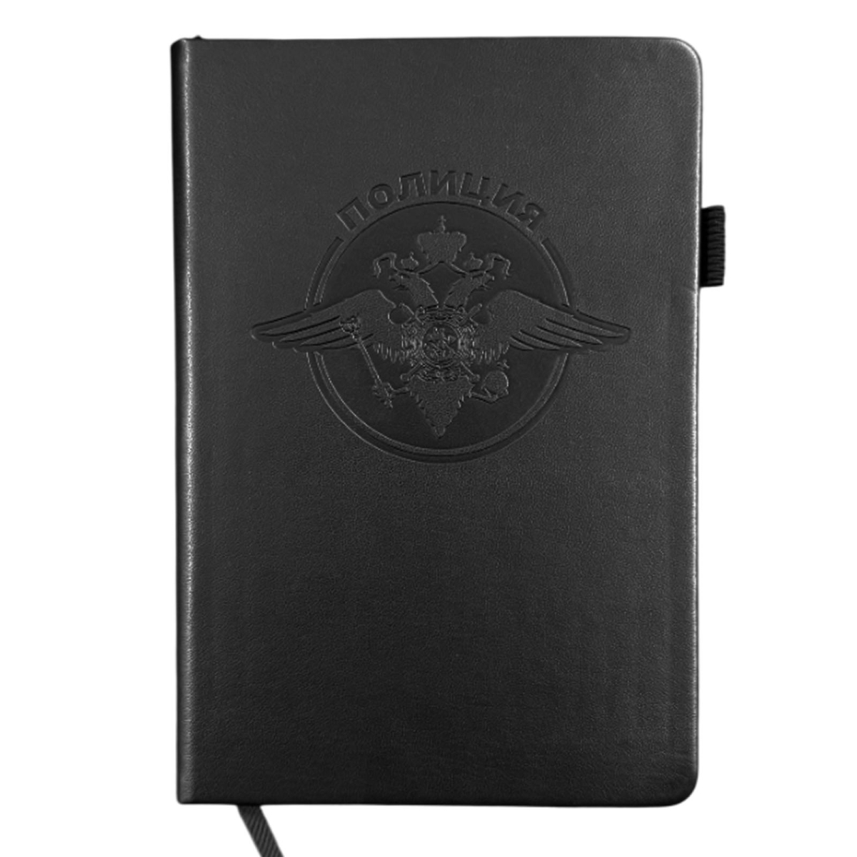 Черный блокнот "Полиция" в размере 13.5х19.5 см практичный и презентабельный для повседневных задач. Обложка выполнена из приятной на ощупь эко-кожи с тиснением, защищает внутренний блок, и придаёт изделию солидный, аккуратный вид.