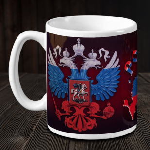 Кружка с Российским гербом из керамики, объемом 250 миллилитров, с тематическим изображением. Заказывайте для себя и в подарок сослуживцам, близким и друзьям по доступной цене с удобной доставкой в любой регион.