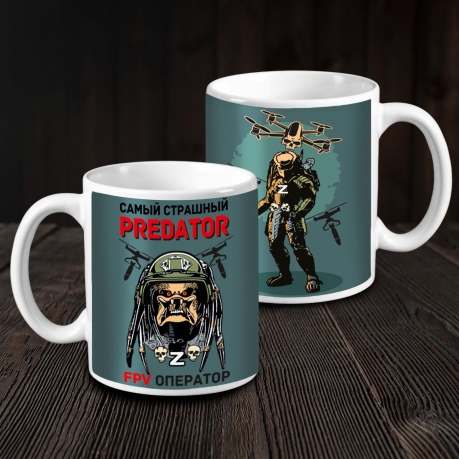 Купить кружку "Самый страшный predator это FPV оператор" можно в Военпро, с удобной доставкой по всей РФ.