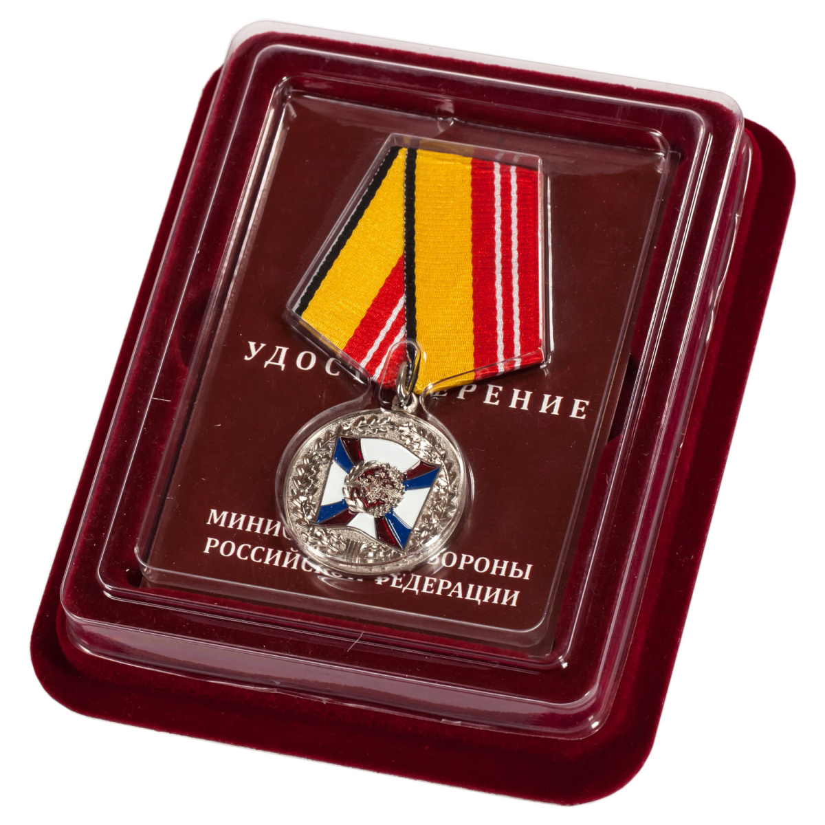 В качестве достойного подарка и торжественного вручения рекомендуем купить медаль МО РФ в наградном бархатистом футляре с прозрачной крышкой и удостоверением в комплекте.