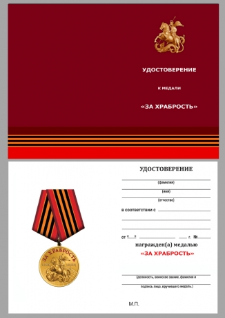 Медаль участнику специальной военной операции "За храбрость" в наградном футляре из флока
