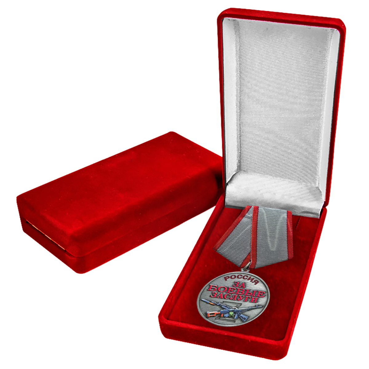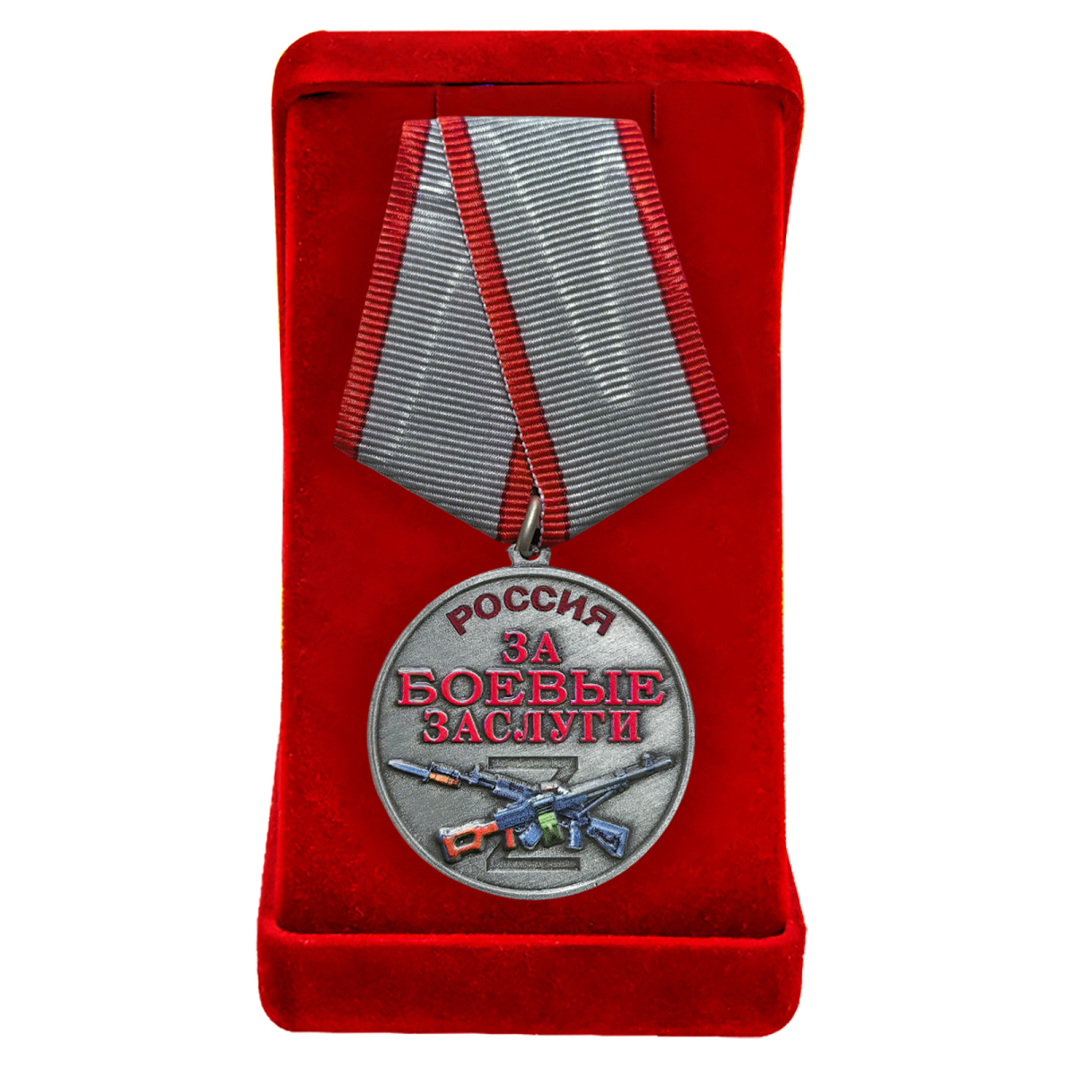 Медаль участнику СВО "За боевые заслуги" в бархатистом футляре (37 мм)