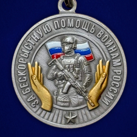 Медаль за бескорыстную помощь воинам России является памятным наградным знаком, символизирующим поддержку, участие и личный вклад. Подходит для вручения в знак благодарности, а также для коллекций и патриотических мероприятий.