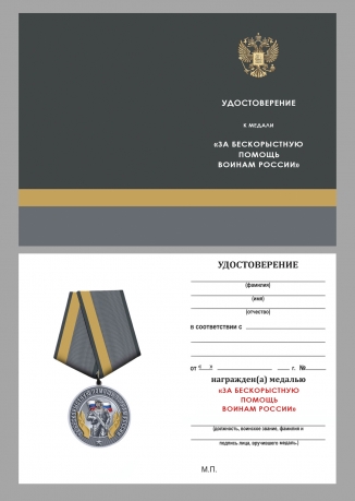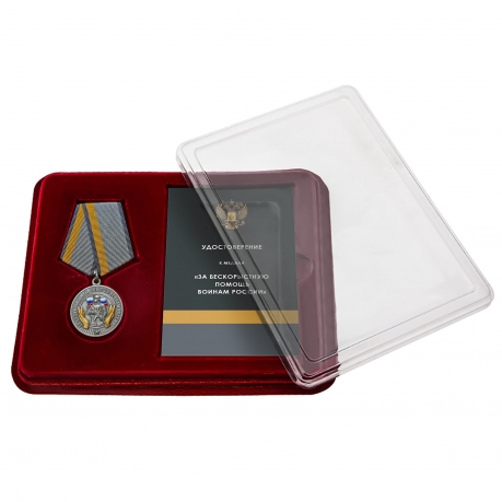 Медаль за бескорыстную помощь воинам России "За вклад в Победу" в наградном футляре с удостоверением